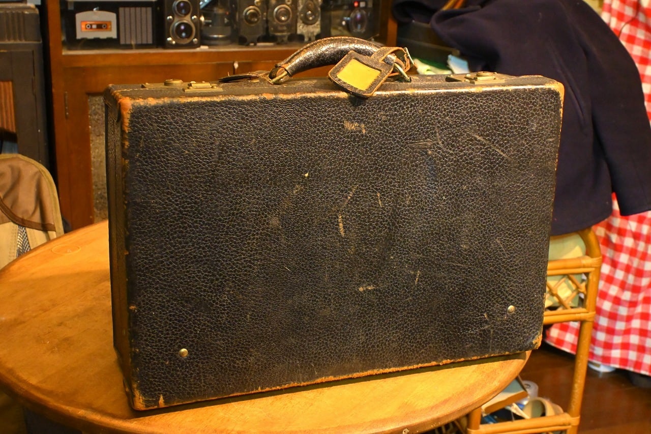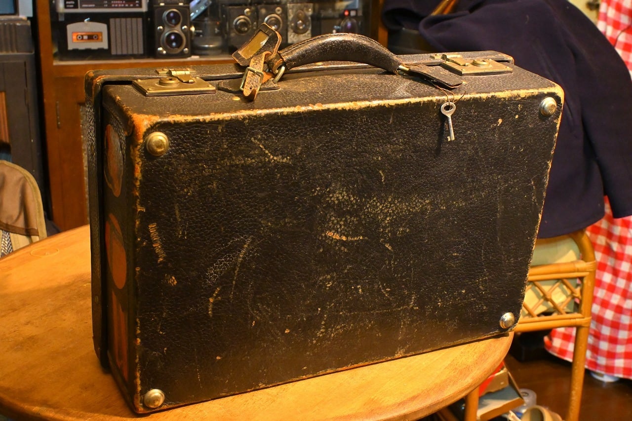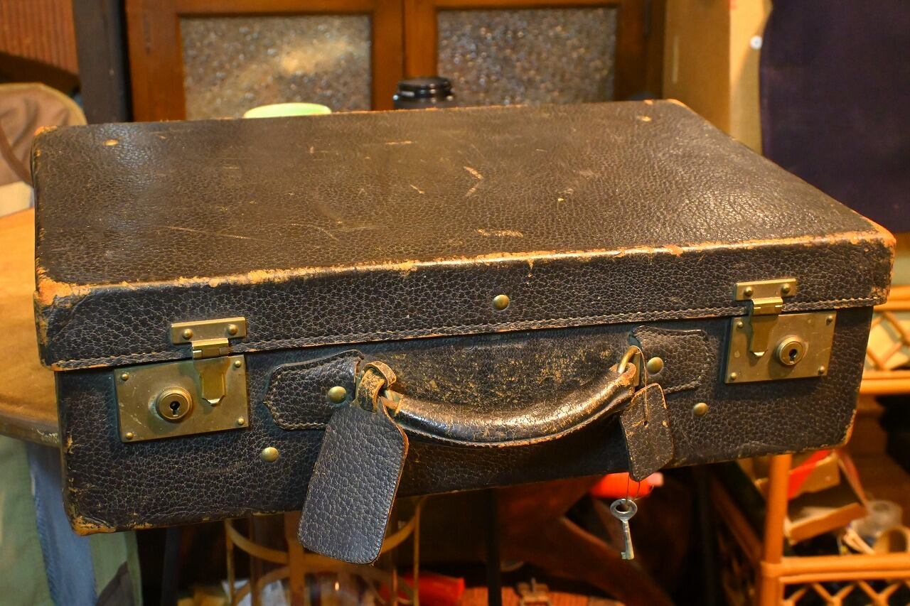 【ビンテージ】1940年代 東京三越 レザートランクケース 九州の宿のステッカー付 旅情満点!